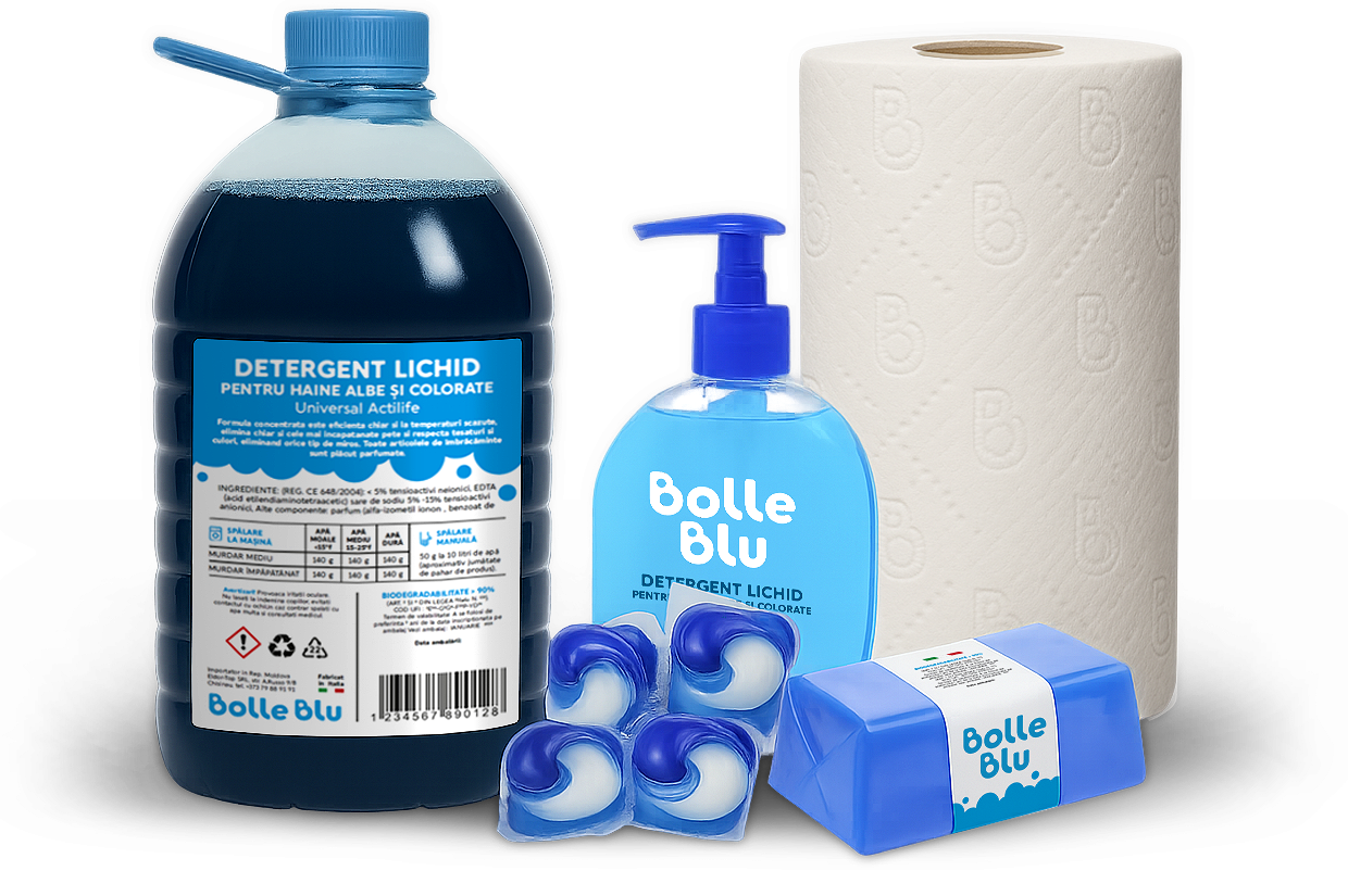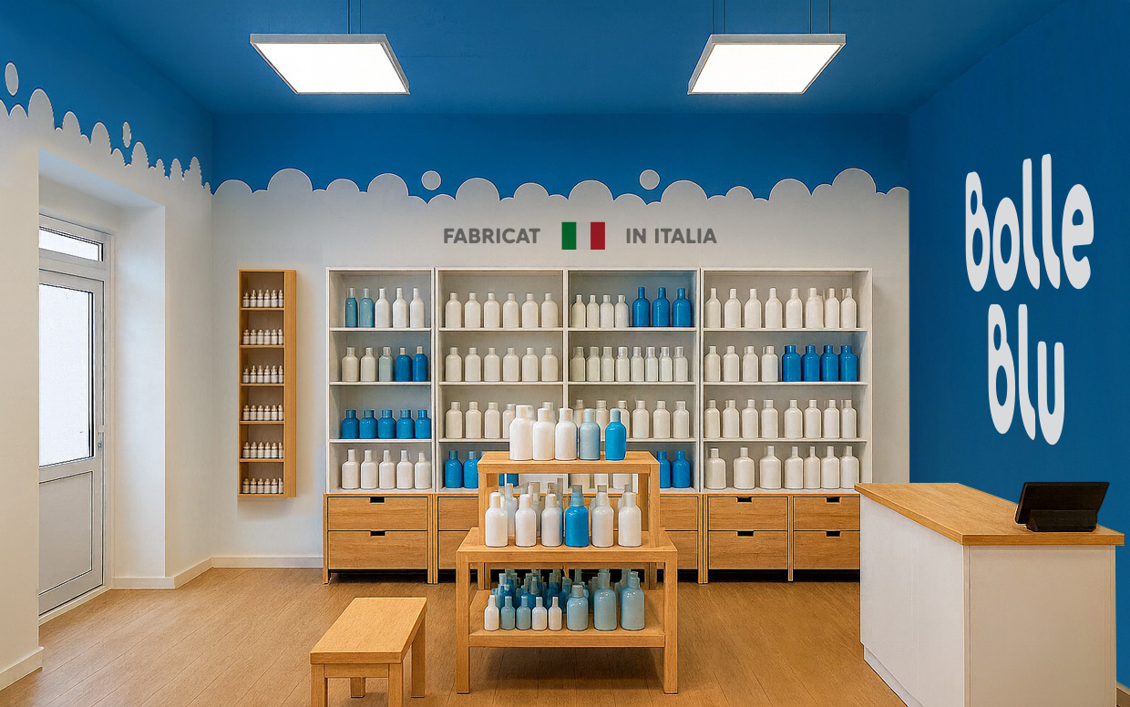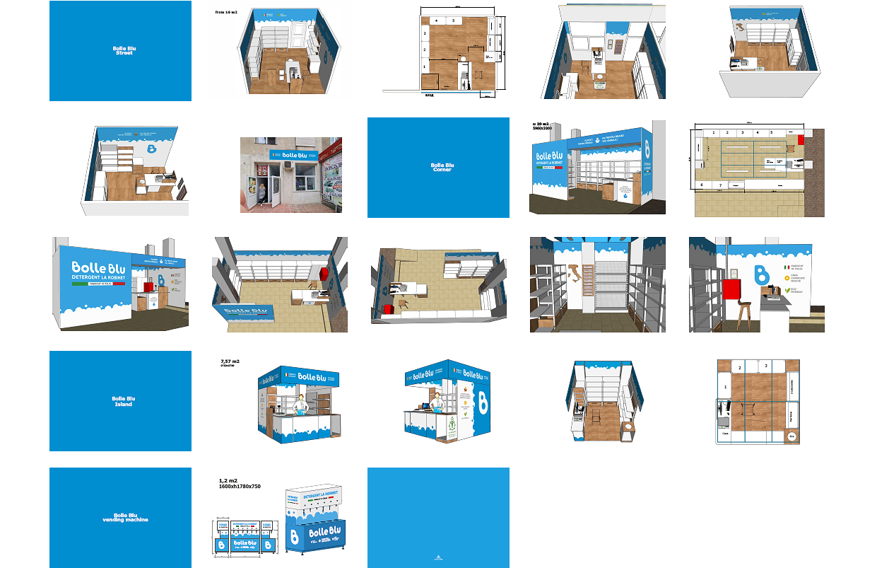 Logo, brand identity, furniture and interior design for a retail chain specializing in detergents and hygiene products (Moldova).