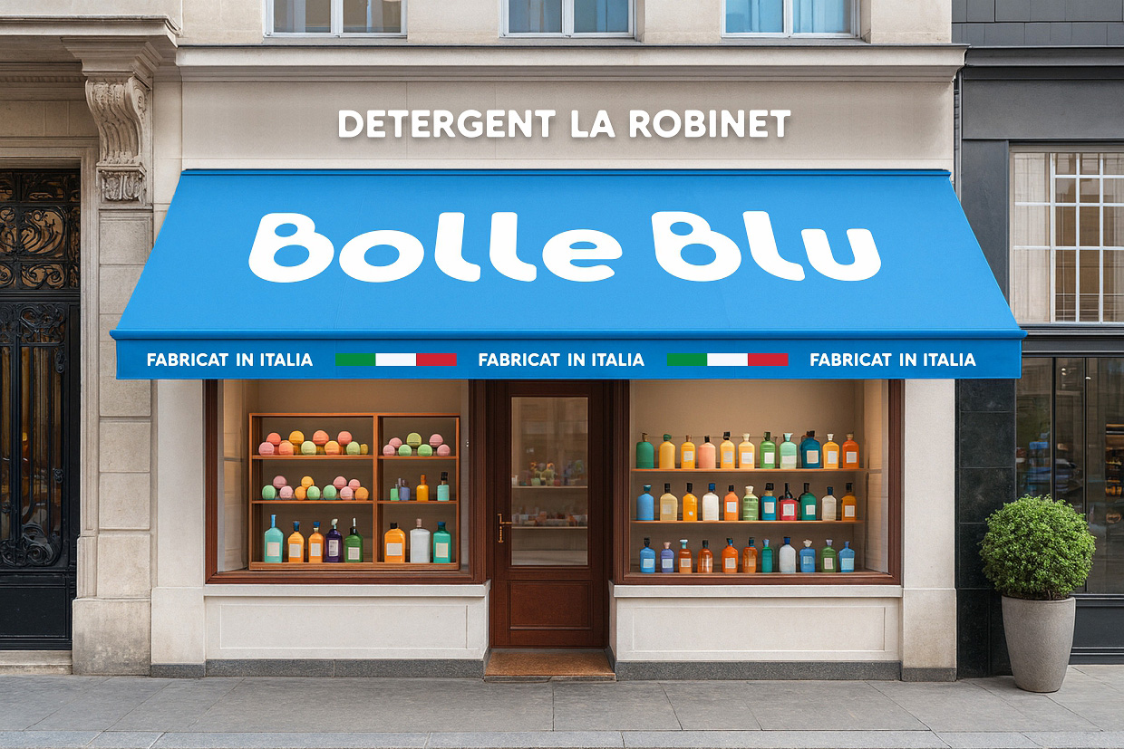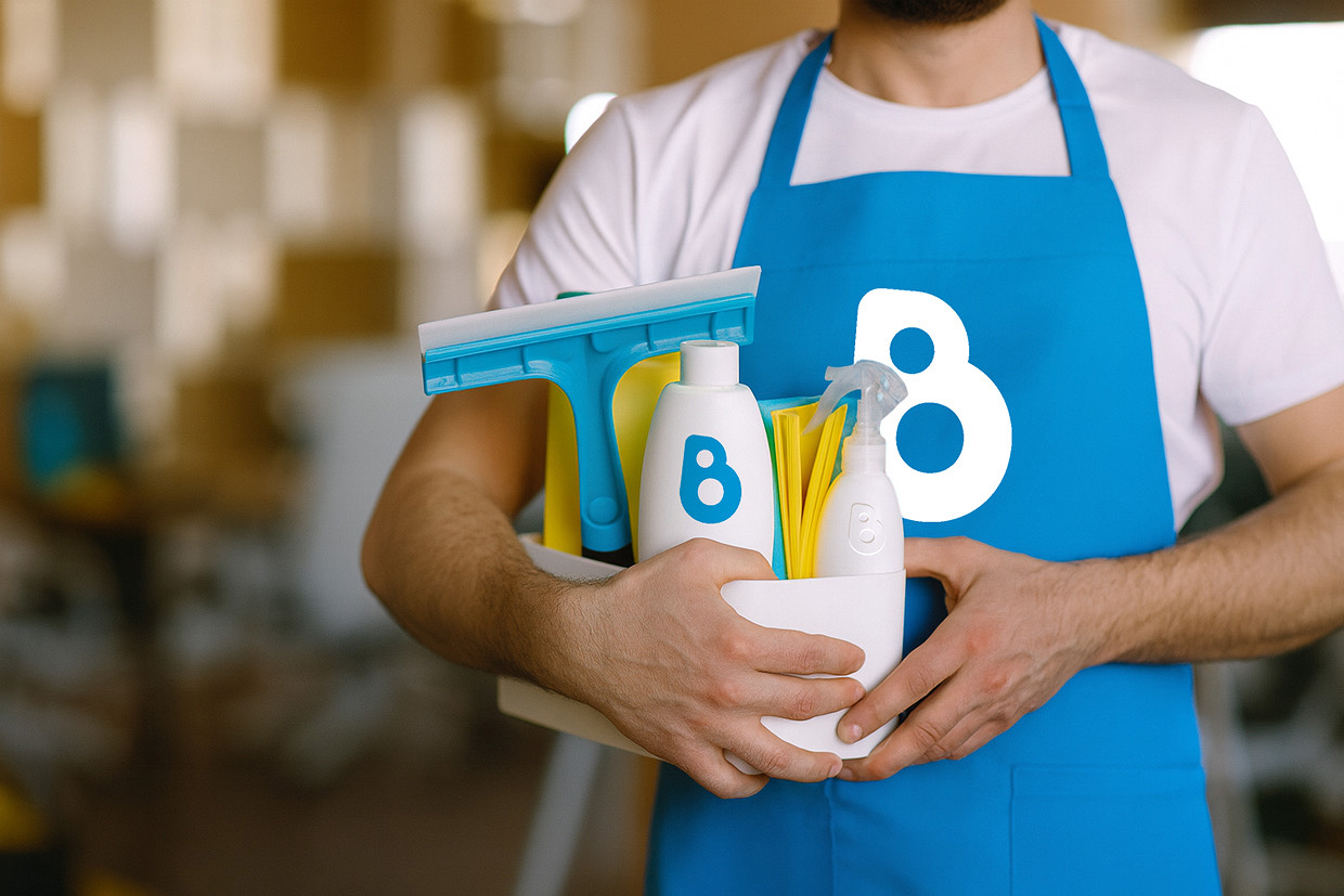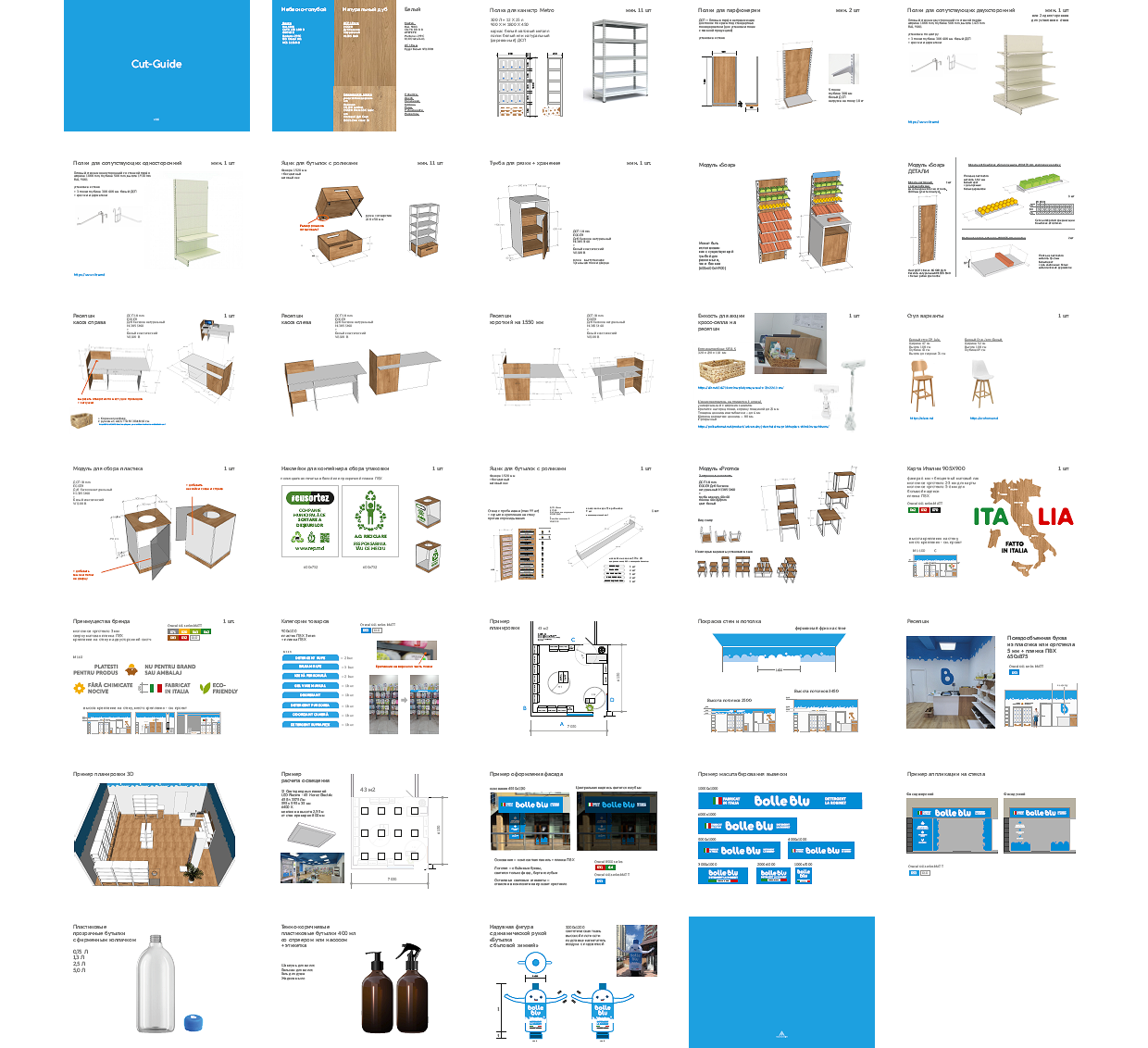 Logo, brand identity, furniture and interior design for a retail chain specializing in detergents and hygiene products (Moldova).